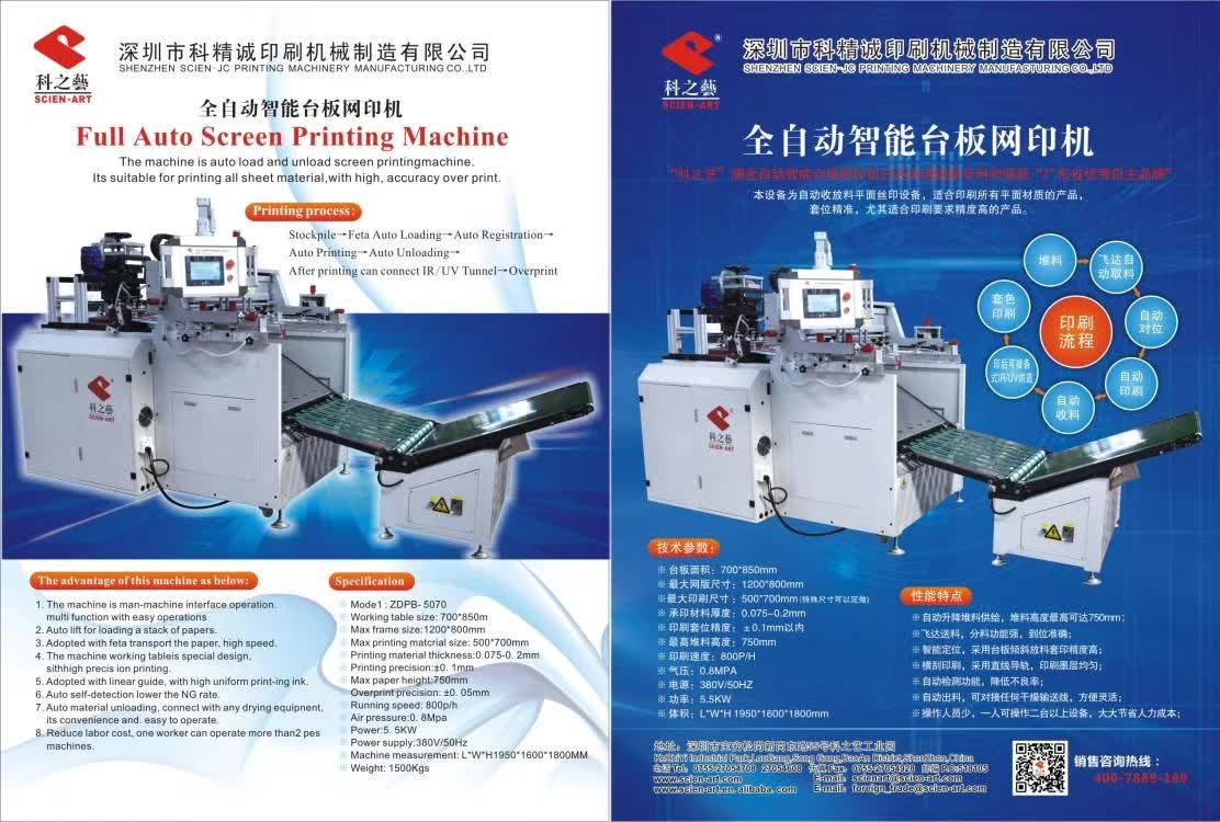 本設備為自動收放料平面絲印設備,適合印刷所有平面材質的片材產品,套位精確,尤其適合印刷精度要求高的產品。